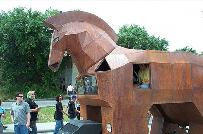 Этот автомобиль долго держался на топовых позициях самого смешного автомобиля в мире. Пассажиры забираются в него точно так же, как в своё время греки, захватившие Трою, в деревянный прототип.