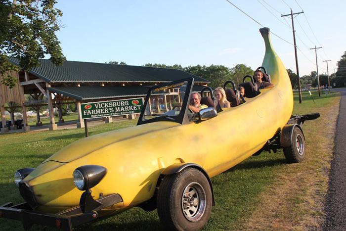 Продукты часто становятся источниками вдохновения для креативных дизайнеров. Вот и автомобиль в виде банана был построен эксцентричным англичанином Стивом Брайтвейтом. Он потратил на модификацию Форда 150 1993 года выпуска 25 тысяч долларов.