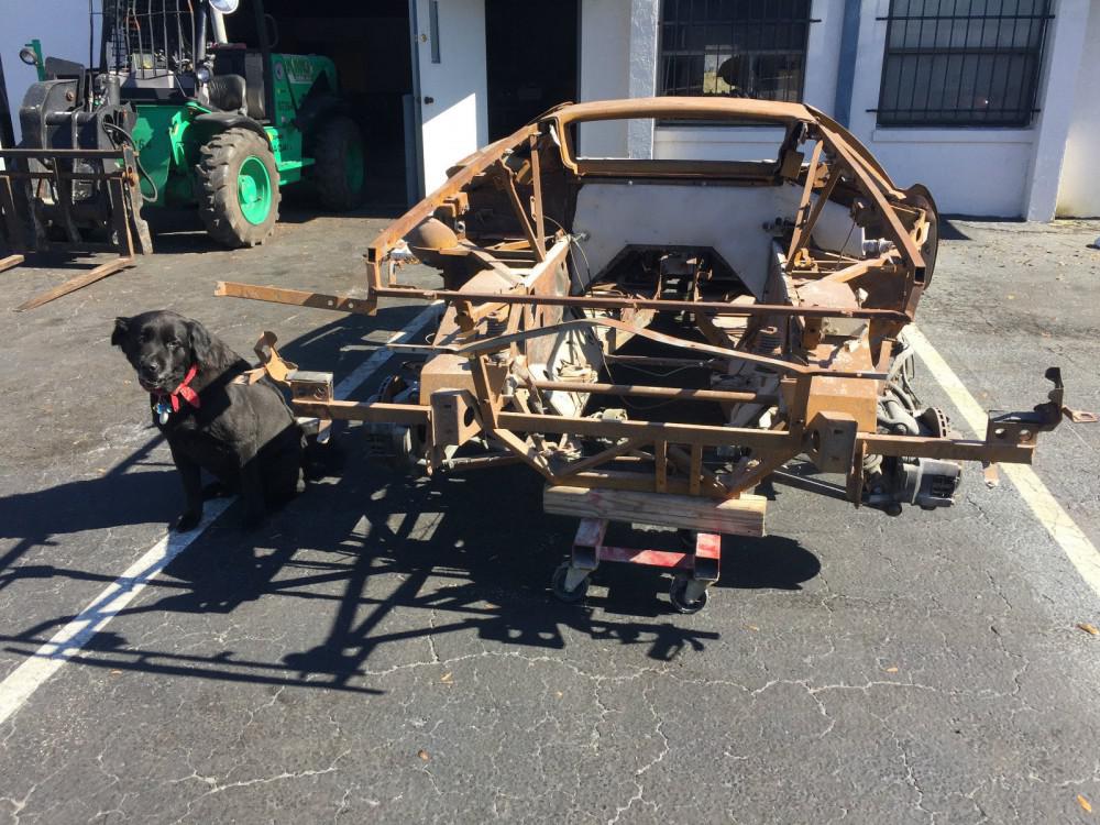 Короче, такой вот Diablo. Без V12, сидений и дверей. Ждет нового хозяина под охраной милого пса.