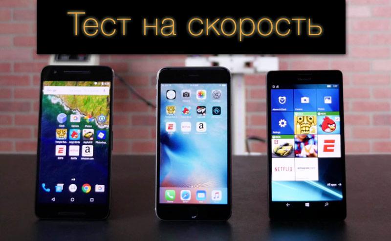 На первых секундах заметно, как iPhone 6s Plus на мгновения отстает от Nexus 6P, благодаря более быстрой анимации у последнего. Однако как только дело доходит до игр, «яблочный» флагман сразу вырывается вперед. Отставание Nexus 6P и Lumia 950 XL увеличивается при повторном «прогоне» программ. Это при том, что у конкурентов iPhone 6s Plus установлено 3 ГБ оперативной памяти против 2 ГБ у iPhone 6s Plus. В итоге Apple-смартфон прошел тесты за 1 минуту и 23 секунды, эталонный «гуглофон» завершил результат вторым с показателем 2 минуты и 4 секунды, флагман Microsoft пришел последним – 2 минуты и 10 секунд.