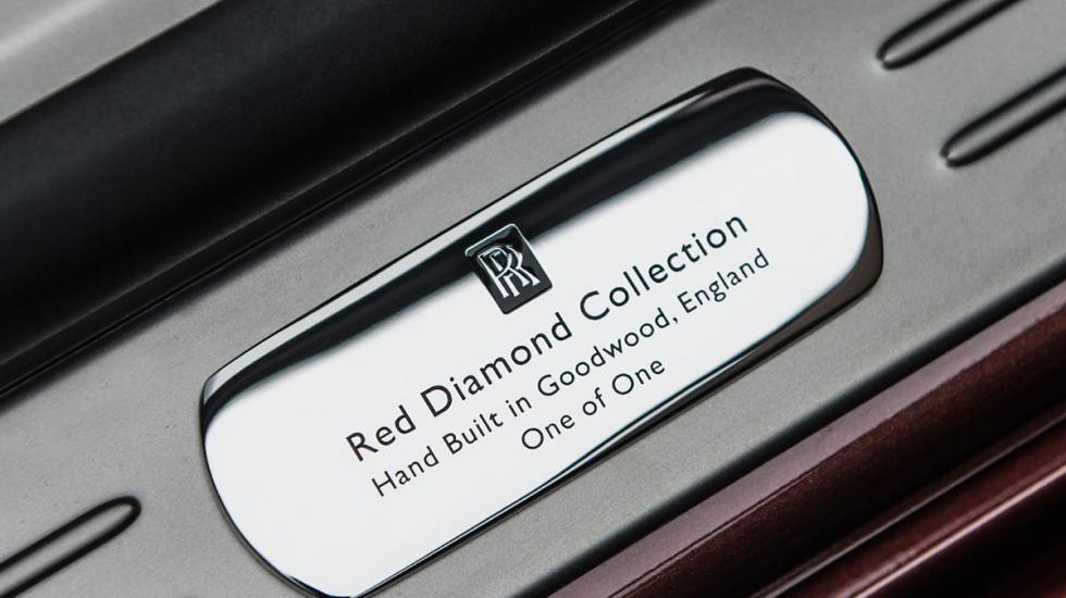 Автомобиль получил солидное название Ghost Red Diamond. Дело в том, что бриллиантов в отделке аж 41 – драгоценные дорожки появились на передней панели и дверных картах. В вдогонку к этому интерьер седана украсили щедрой порцией дерева и кожей плюс опознавательными табличками на дверных порогах, говорящих о ручной сборке и статусе уникального авто.