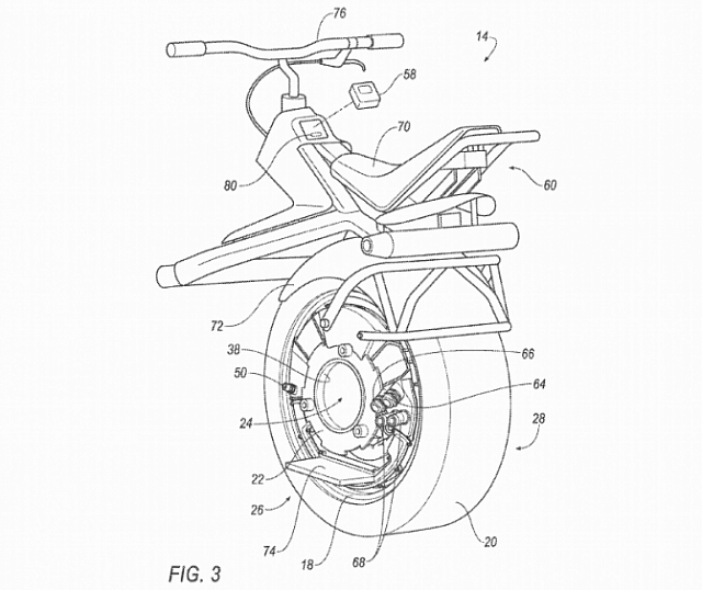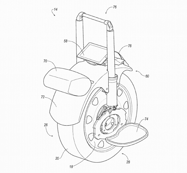 Документ называется «Self-propelled unicycle engagable with vehicle». В нем описывается транспортное средство с необычной гибридной конструкцией: автомобиль «интегрированный» моноцикл с электрическим приводом.