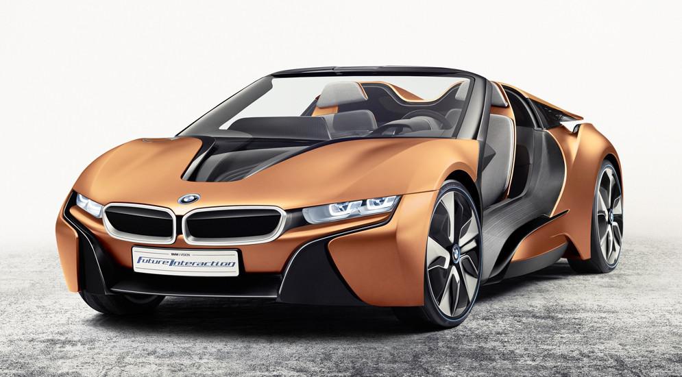 Первый прототип построен на базе концептуального родстера BMW i8 Spyder. Автомобиль оснащен технологией автономного вождения, сенсорным экраном диагональю 21 дюйм и трехмерной системой распознавания жестов AirTouch.Концепт BMW i Vision Future Interaction имеет три режима управления: при активации Pure Drive машиной управляет водитель; включив режим Assist, «пилот» по-прежнему ведёт купе, однако если возникнет потенциальная опасность, то вмешается компьютер; режим Auto Mode – это, по сути, автопилот, активация которого подтверждается синей подсветкой руля.Гигантский дисплей выполняет две функции – приборной панели, если BMW i Vision Future Interaction управляет водитель, и информационно-развлекательного комплекса, когда включен режим автопилота.