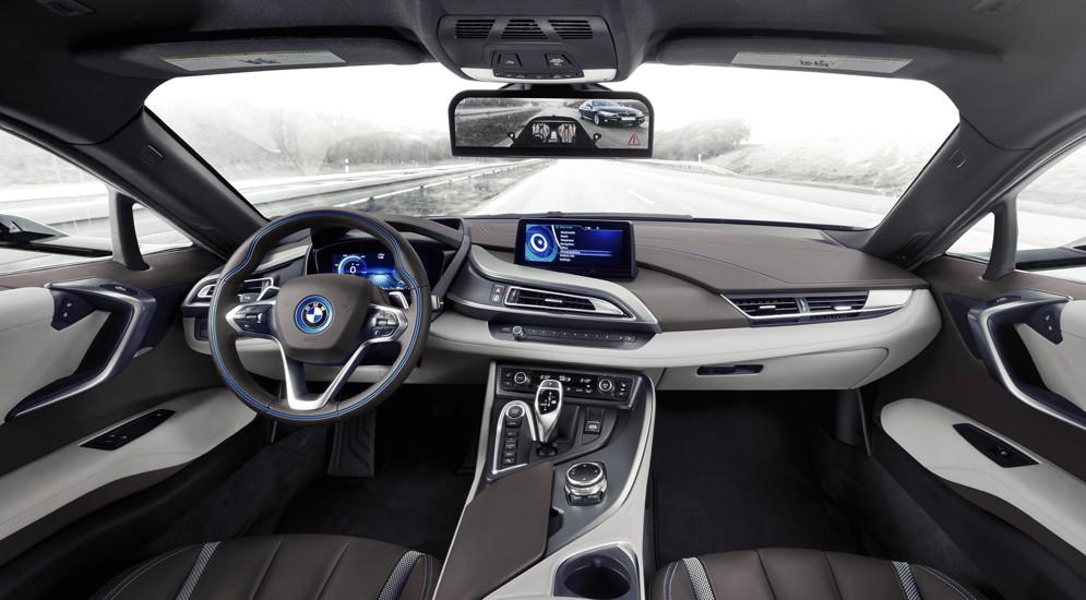 У второго концепта – BMW i8 Mirrorless – вместо боковых зеркал установлены две видеокамеры, а третья камера интегрирована в экран с высоким разрешением, выполняющий роль салонного зеркала заднего вида.На этот дисплей и выводится изображение. В компании BMW считают, что камеры обеспечивают больший угол обзора, чем традиционные зеркала, и что автомобиль лучше справляется со «слепыми пятнами».Немцы не уточнили, когда именно данные технические решения будут применены в серийных моделях BMW. Между тем автопилот уже доступен в некоторых массовых автомобилях. Например, такая опция есть у Tesla. Правда, недавно компания признала, что заменяющая водителя система не способна гарантировать полную безопасность пассажиров.