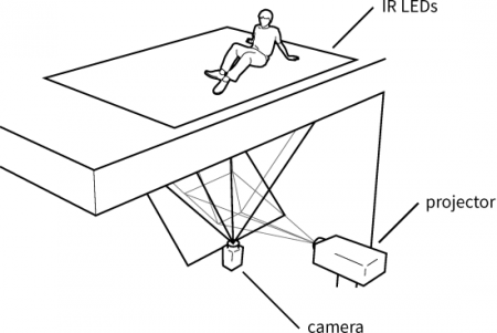Под полом предусмотрено специальное помещение для инфракрасной камеры и видеопроектора высокого разрешения, которые отслеживают следы и проецируют изображение на стекло. Стекло покрыто прорезиненной, чувствительной к давлению пленкой со встроенными инфракрасными светодиодами, которые отправляют сигналы на камеру.