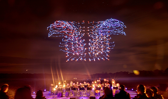 На земле играл оркестр, а мрак тьмы разгоняла подсветка дронов, которые мигали в тон девятой симфонии Бетховена. Такое шоу просто должно было войти в историю, поэтому представители книги рекордов Гинесса зафиксировали самый масштабный полет беспилотников одновременно.
