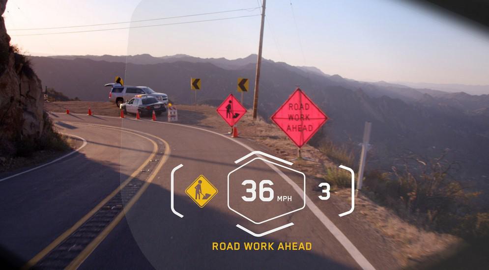 Новинка отличается от любой другой мотоциклетной "каски" наличием проекционного дисплея, на который может выводиться оперативная информация, дублирующая показания приборной панели, а также "подсветка" дорожных знаков и предупреждения о различных опасностях на дороге.