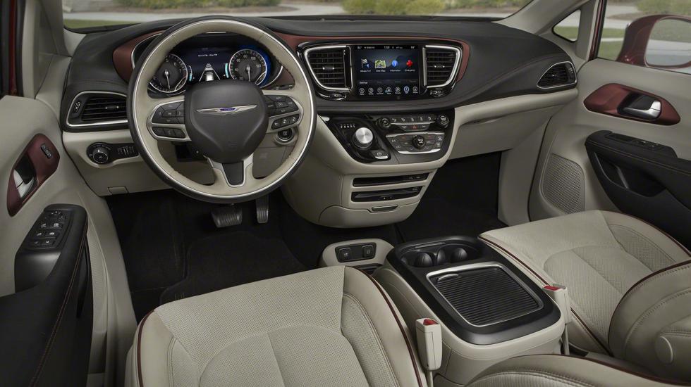 Гибридный вэн, согласно подсчетам Chrysler, может обходиться всего 3,5 литра топлива на 100 км хода и проезжать исключительно на электротяге по 48 км. Коробка передач, вне зависимости от выбора модификации, – девятидиапазонный автомат.