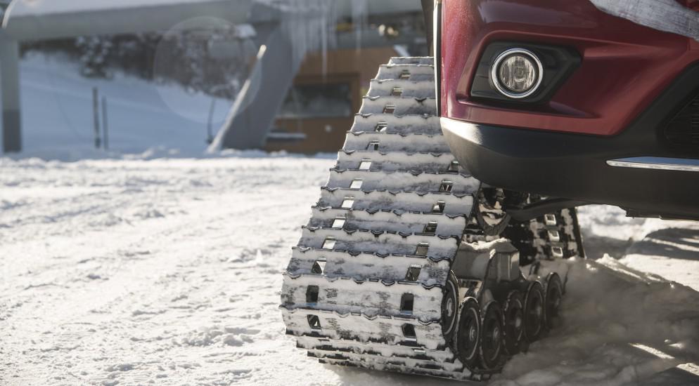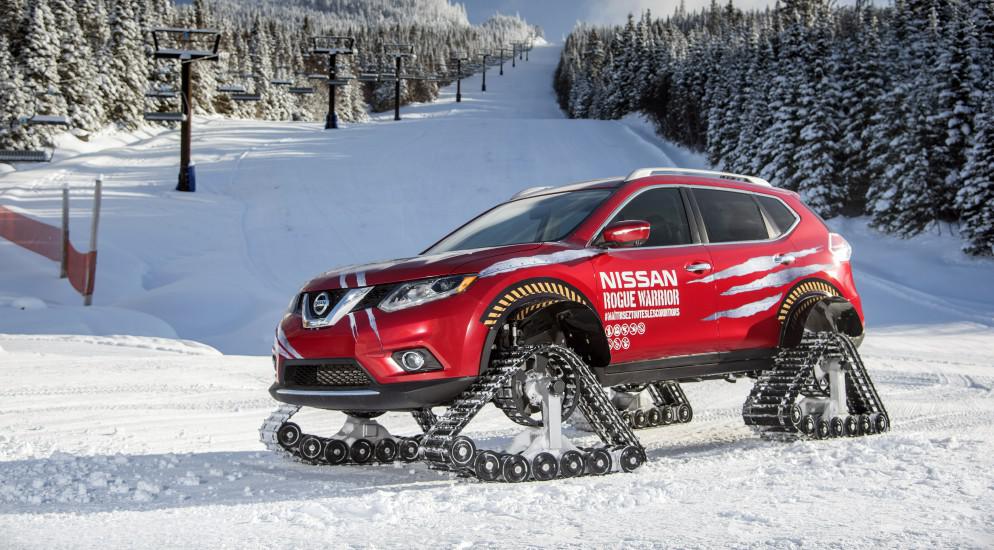 Самый продаваемый кроссовер компании в Канаде Rogue (на нашем рынке представлен как X-Trail) значительно модифицирован. Были установлены гусеницы Dominator компании American Track Truck, размерностью 76 см в высоту, 122 см в длину и шириной колеи 38 см.