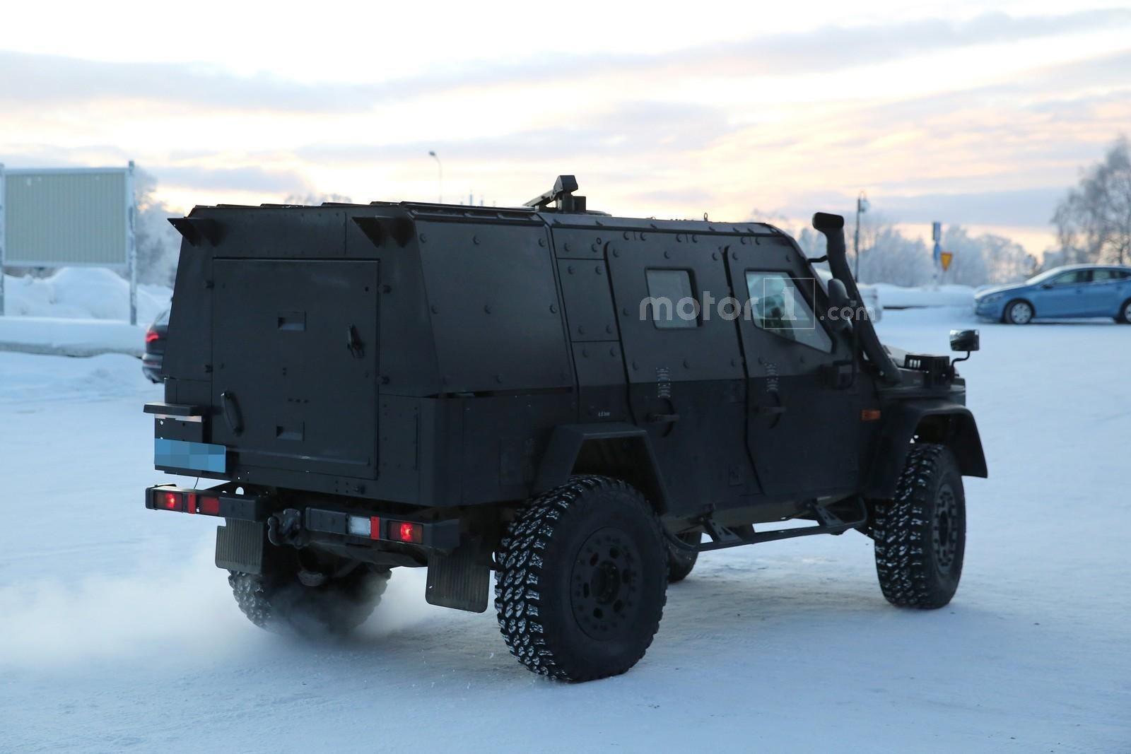 Об автомобиле практически ничего неизвестно – пока что довольствоваться можно лишь фото. По всей видимости, бронированный G500 получил усиленный передний бампер, шноркель, буксировочные проушины, большой клиренс, внедорожные покрышки и пороги.