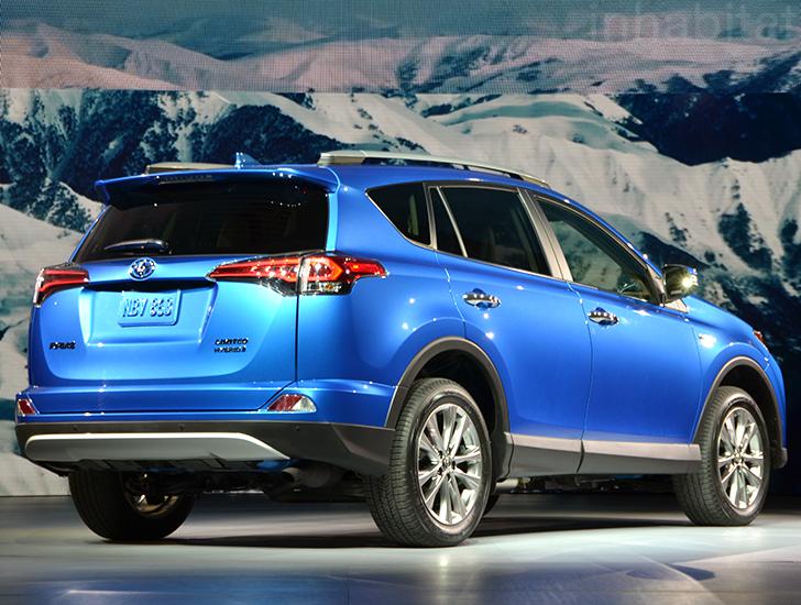 Обновленный RAV4 изящнее с более угловой и увеличенной радиаторной решеткой, чем в предыдущей версии. При виде сбоку и сзади, изменения становятся более тонкими. В общем, решетка и другие отверстия закрыты больше, а фары сужаются к центральной части капота. Похожее решение применено и в задней части авто, где тормозные огни сужаются также к центру. Наконец, задняя опорная плита получила серый цвет, стилизованный под металл. Эти изменения в значительной степени будут перенесены и на обычные RAV4, хотя гибриды будут иметь своё оформление места прикрепления номера и уникальные 17 — дюймовые колеса.