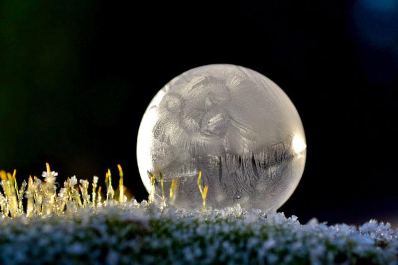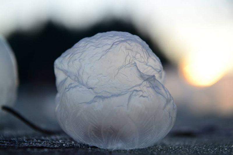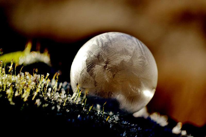 Результатом этого захватывающего эксперимента, стали удивительные крупные планы замерзших мыльных пузырей с разных ракурсов. Мало того, что каждый мыльный пузырь замерзал своим особенным способом, они еще и разрушались по-разному.