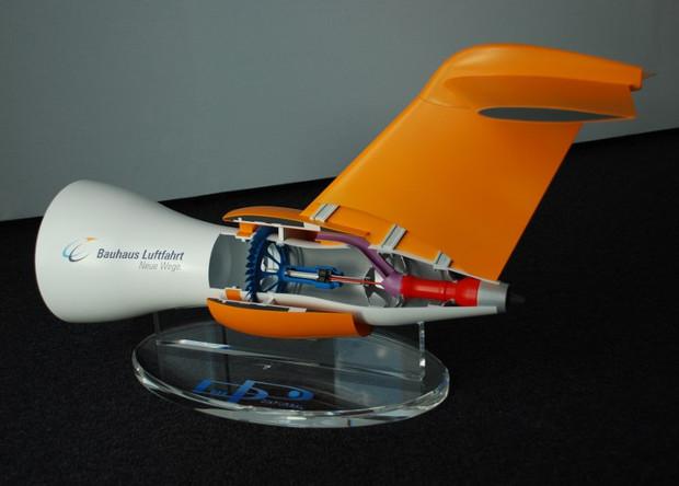 На перспективный самолет планируется установить реактивные двигатели с ультравысокой степенью двухконтурности без системы отбора воздуха. Они обеспечивают относительно высокий уровень тяги при небольшом потреблении топлива. Отсутствие системы отбора воздуха позволяет сделать двигатели немного легче, а также установить дополнительные генераторы. Это позволяет увеличить количество потребителей электроэнергии на борту самолета. Электрический вентиляторный двигатель на самолете будет установлен соосно и получит кольцевой воздухозаборник, огибающий хвостовую часть фюзеляжа по периметру. Для улучшения притока воздуха к двигателю фюзеляж перспективного самолета сделают немного длиннее. Кроме того, установка двигателя в хвостовой части вынудила разработчиков спроектировать самолет с Т-образным хвостовым оперением, то есть с расположением рулей высоты на законцовке киля.