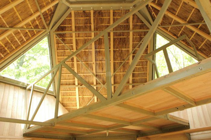 Основу домика составляет металлический каркас, обшитый натуральной древесиной из акации и сосны. Крыша покрыта деревянной черепицей. Каждое жилище стоит на металлических ножках и при необходимости может быть переставлено в любое другое место. Дизайнер утверждает, что конструкция ее домов выдержит в ненастье даже сильные порывы ветра.