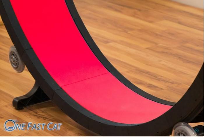 Бег в колесе, по заверениям создателей One Fast Cat, ничем не отличается от бега «на воле». Внутри «беговая дорожка» покрыта материалом EVA (вспененный полиэтилен с добавлением этивинилацетата), который защищает когти питомца. А ведь коты естественно выпускают их во время бега, для лучшего сцепления с землёй. При этом дизайн тренажера-колеса не предполагает спиц, что так же работает на безопасность животного.