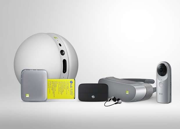 Кроме флагманского смартфона, который должен сделать бум на рынке технологий, компания представила набор аксессуаров под названием LG Friends, в который вошли дополнительные модули, VR-очки, контроллер для управления дронами, Bluetooth-гарнитура, панорамная камера, наушники и сферический робот LG Rolling Bot.