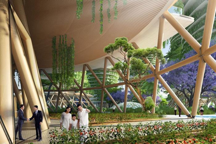 В каждой башне помимо жилых апартаментов оборудуют рестораны, тренажерные залы, офисы, коворкинг-зоны для молодежи. Разработчики утверждают, что в фермерских хозяйствах с одного квадратного метра получат до 20 кг органических фруктов и овощей, реализация которых будет осуществляться тут же в местных магазинах.