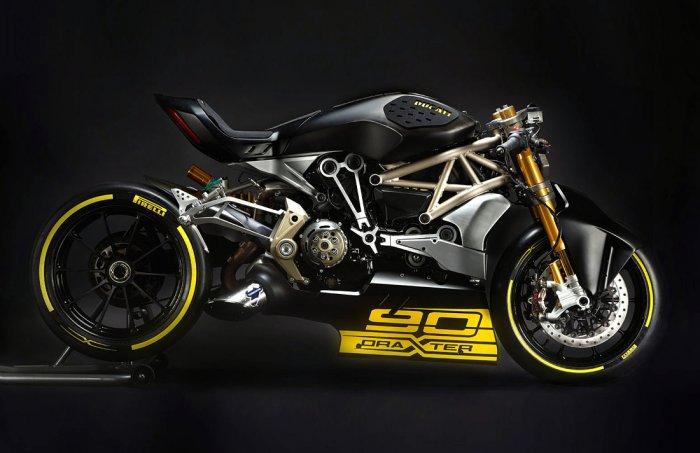 Именно в этом году компания Ducati отметит юбилей. Чтобы четче обозначить грядущий праздник, дизайнеры добавили на корпус мотоцикла массивный номер 90 рядом с самим названием концепт-байка.