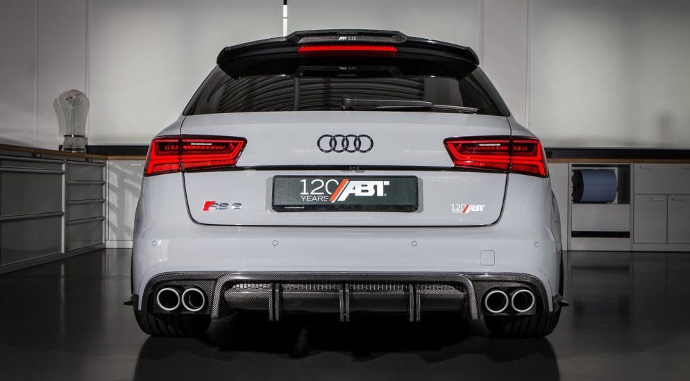 Также машина получила 22-дюймовые легкосплавные колесные диски.Салон новинки получил двухцветную кожаную обивку, при этом потолок и стойки были обтянуты алькантарой. Приборную панель украсили табличкой с индивидуальным номером ограниченной серии, а на ковриках и дверных порогах появилась надпись «120 years». Тираж Audi RS6 Avant от тюнинг-ателье ABT составит 12 единиц. Универсал покажут широкой публике на Женевском автосалоне, который пройдет в начале марта текущего года.