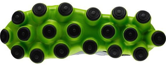 Каждый ботинок оборудован 19 огромными шипами из углеродной резины. Главная идея состоит в том, что схема расположения шипов на подошве не позволяет грязи, песку и снегу застревать между ними. Шипы расположены под углом 28 градусов, что обеспечивает хорошую опору. Сами кроссовки изготовлены из прочной синтетической ткани.