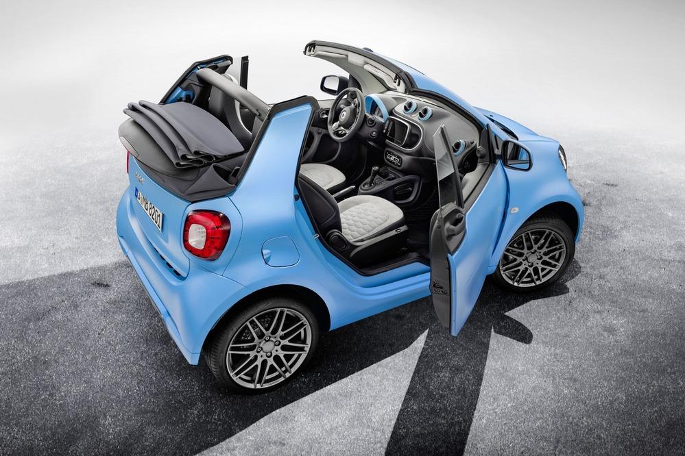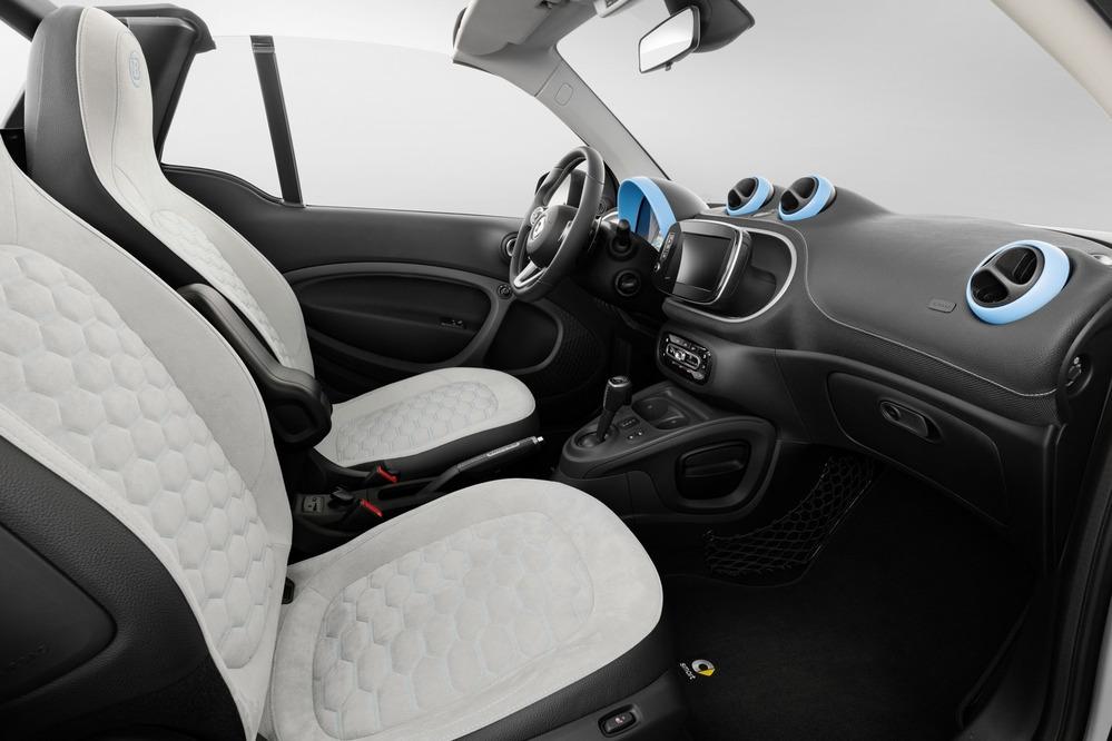 В интерьере спорт-пакетом предусмотрены трёхспицевый кожаный мультируль, накладки на педали из матовой нержавейки, а ещё кожаные рукоятки рычага коробки передач и стояночного тормоза. С апреля такой Brabus Sports package все официальные дилеры марки Smart начнут предлагать для владельцев новых Fortwo с мягким и жёстким верхом, а также для пятидверки Forfour.
