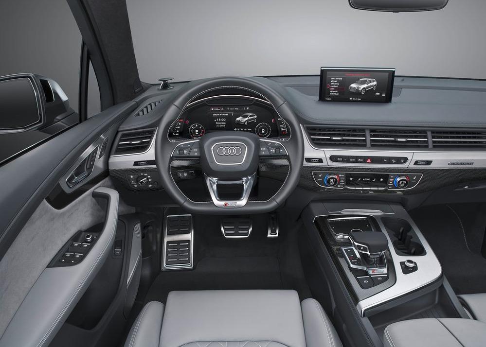 Внешне Audi SQ7 TDI, который поступит в продажу в Европе уже этой весной можно будет отличить по большим красивым легкосплавным дискам диаметром от 20 до 22 дюймов, изменённым бамперам и радиаторной решётке, алюминиевым накладкам на боках и корпусах зеркал. Интерьер будет отличаться кожаной отделкой, обтянутым алькантарой потолком, вставками из углеволокна, алюминия и многочисленными опциями от 11-канальной аудиосистемы Bang & Olufsen с 23 динамиками до собственной точки доступа WI-FI на борту.