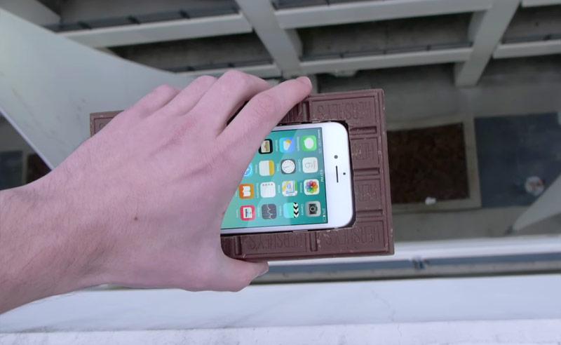 Известный во всем мире видеоблоггер проекта TechRax решил проверить, сможет ли работать iPhone, если его уронить на бетон с высоты 30 метров. В качестве защитного чехла выступила плитка шоколада Hershey’s.