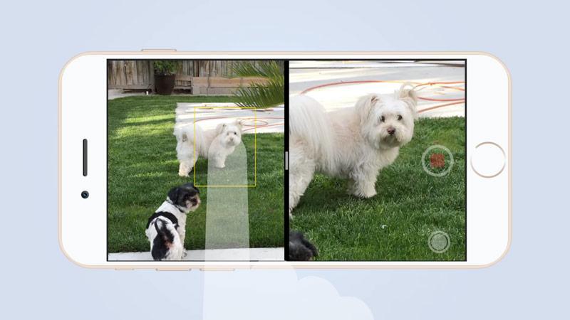 Технология была запатентована купертиновцами еще в прошлом году. На одной из иллюстраций к патенту показан интерфейс камеры для съемки в режиме зум. Экран разбит на две части – сверху показано оригинальное изображение, снизу – увеличенное. Перемещая палец по верхней части, пользователь может выбрать нужный фрагмент кадра для съемки фото или видео.