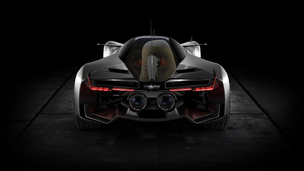 Полет суперкаровской мысли Bell & Ross дошел до некоторых условных характеристик. По замыслу, 4,7-метровая машина весит чуть за 1300 кг (спасибо карбоновому монококу в основе и алюминиевому кузову) и оснащена более чем 600-сильным 4,2-литровым V8 с парой турбин. Еще тут 8-ступенчатый робот с двумя сцеплениями, а также задний привод. Ехать до первой сотни все это должно за 2,9 секунды.