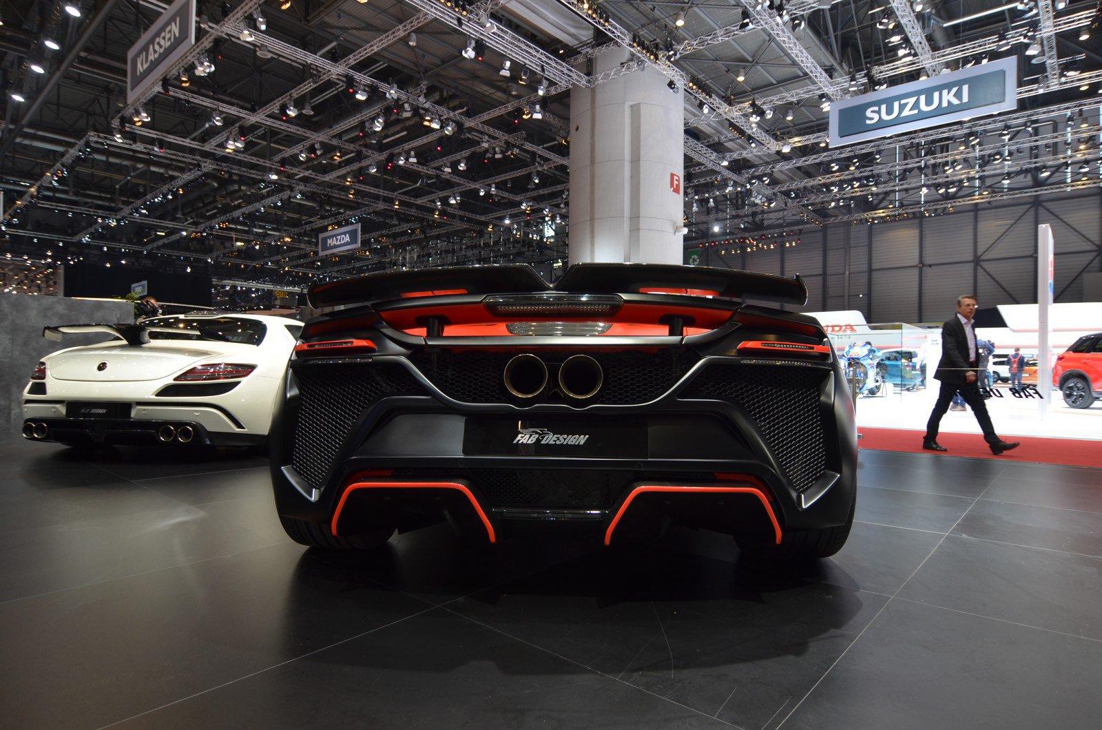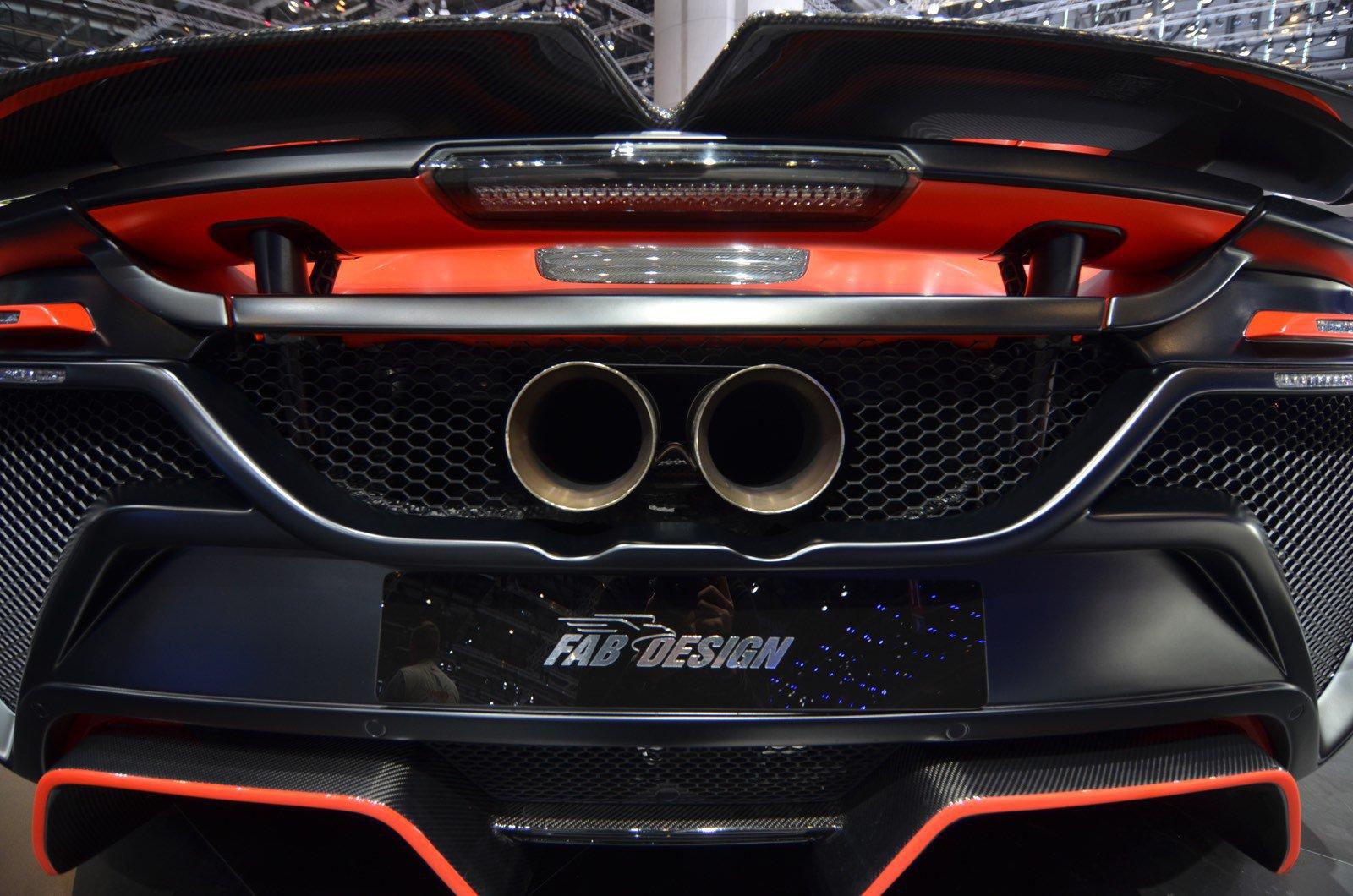 Задняя часть суперкара полностью переоборудована: новый бампер и крылья дополнены большими воздухозаборниками по обе стороны от колеса. Последний элемент кузова – лёгкий фирменный спойлер FAB Design. Хотя движок McLaren оказался нетронутым, FAB Design заменили выхлопную систему. В результате автомобиль стал не только громче, но и на 32 л.с. мощнее стандартной версии. По традиции, последним элементом в списке апгрейдов VAYU стал новый комплект 20-дюймовых дисков FAB Design EVOLUTION с шинами Dunlop Sport Maxx.