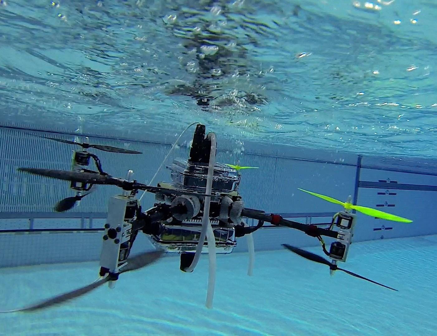 Учёные из Университета Джона Хопкинса разработали нового дрона, который способен жить под водой и летать. Следовательно, его можно использоваться как традиционно, для мониторинга в небе, так и в воде. Квадрокоптер назвали CRACUNS в честь мифологического животного, которое обитает на морском дне.