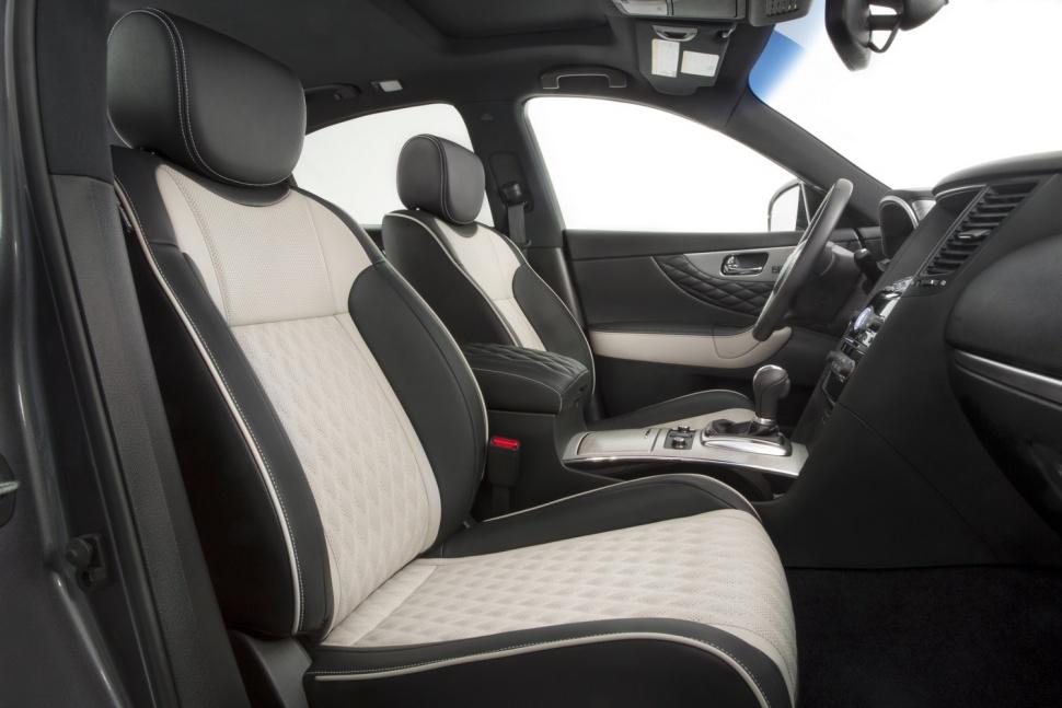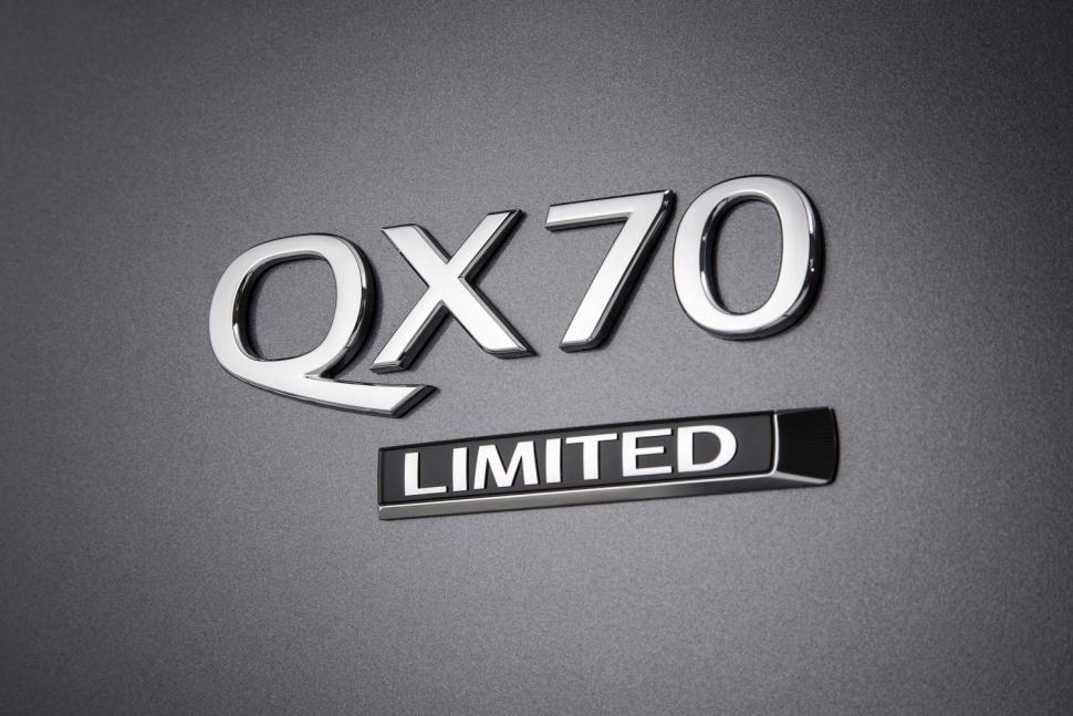 От обычной версии Infiniti QX70 Limited отличается другой решеткой радиатора, модернизированным передним бампером, «затемненными» фонарями и 21-дюймовыми колесами. Кроме того, машина оснащается окрашенными дверными ручками и дополнительной защитой из нержавеющей стали. В салоне Infiniti QX70 Limited имеется контрастная отделка и вставки из натурального дерева и алюминия. Салон выполнен в черно-бежевых тонах.