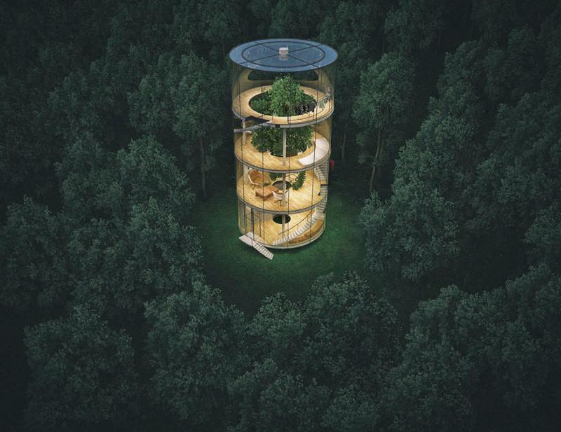 Дизайнер из Казахстана спроектировал стеклянный дом в виде трубы вокруг дерева (ФОТО)