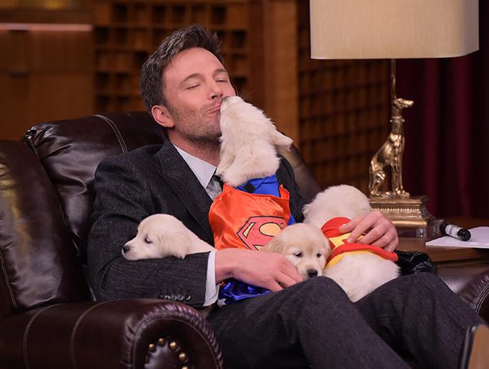 Это пародия на популярную американскую телеигру Jeopardy!, похожую на нашу «Свою игру». Правда, у Фэллона гости выигрывают не деньги, а получают щенков. На этой неделе в мировой прокат вышла картина «Бэтмен против Супермена», в которой Аффлек сыграл Брюса Уэйна и его альтер-эго Бэтмена.