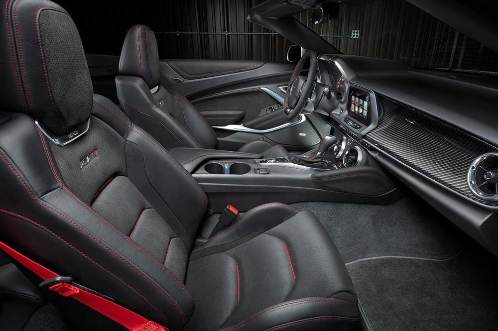 Интерьер «заряженного» кабриолета повторяет оформлением купе ZL1. У него такие же спортивные кресла Recaro, которые, как и усечённый снизу руль, а также рукоятка коробки передач, обтянуты кожей и замшей с контрастной красной строчкой. То тут, то там встречаются шильдики с названием модификации – ZL1. Продажи новой открытой спортивной двухдверки начнутся позже, чем купе. В США машины должны появиться у дилеров только в начале 2017 года.