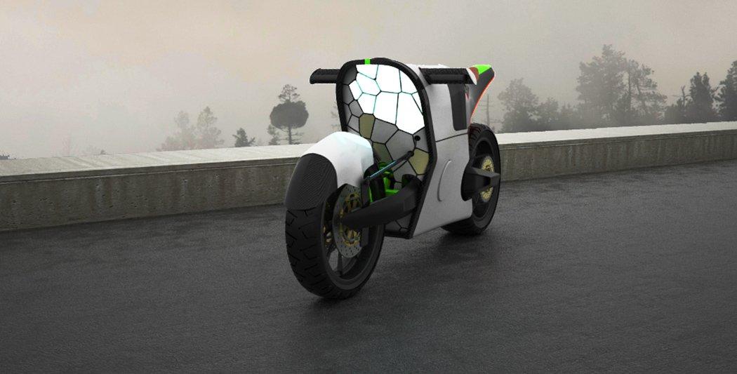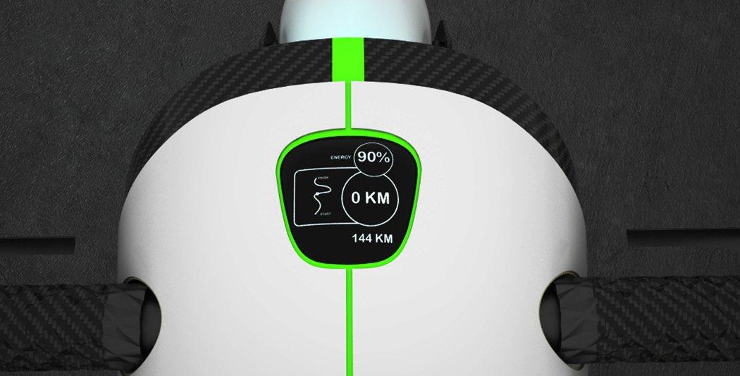 Как и подобает инновационному транспортному средству, оно напичкано электроникой, венцом которой является минималистичный дисплей по центру. Передняя фара изготовлена на основе диаграммы Вороного, также известной, как мозаика Вороного.