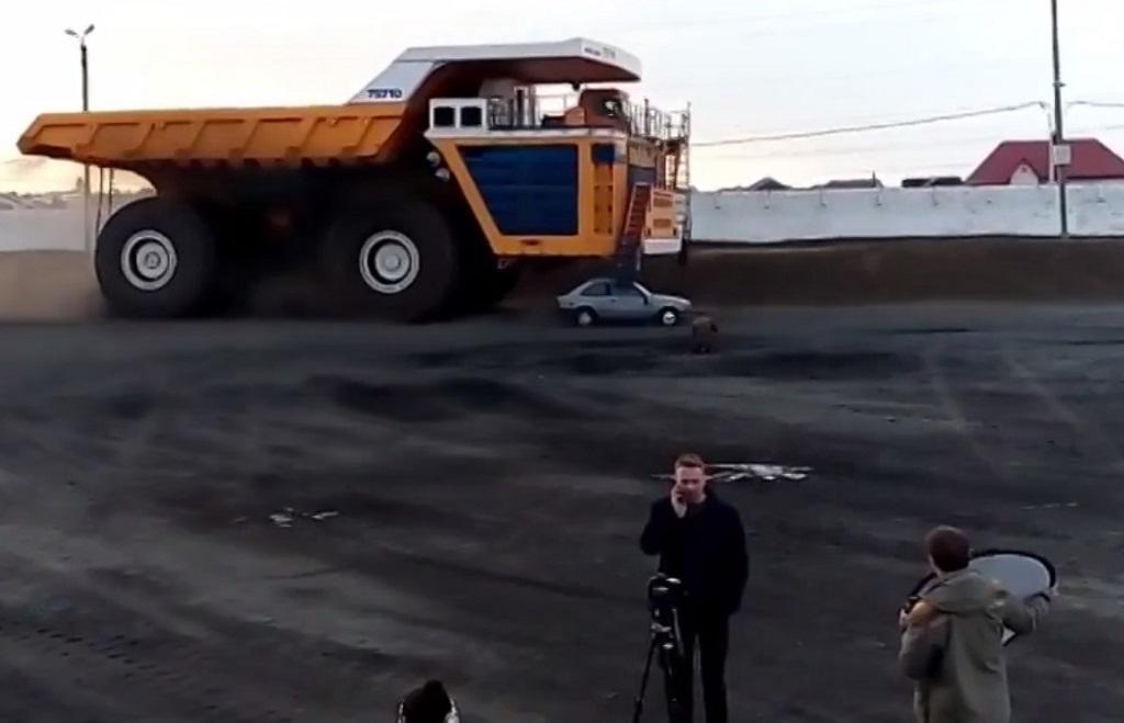 Смелый эксперимент: БелАЗ VS седан (ВИДЕО)