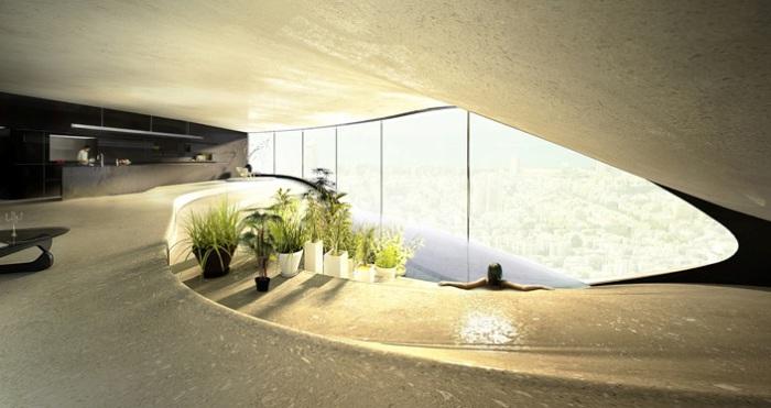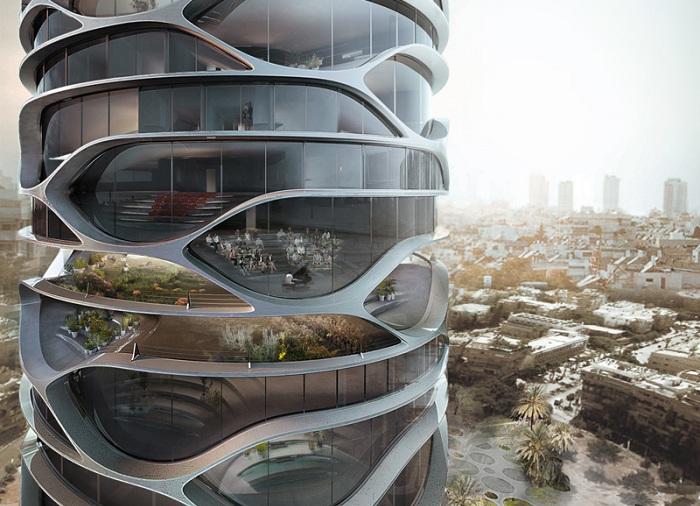 Внутри небоскреба архитектор планирует расположить жилой сектор, отельные номера, рестораны, бары, сады и парки. На некоторых этажах построят бассейны и спа-салоны с водой из Мертвого моря. К тому же на территории комплекса можно будет найти коворкинг-пространства для свободного общения.