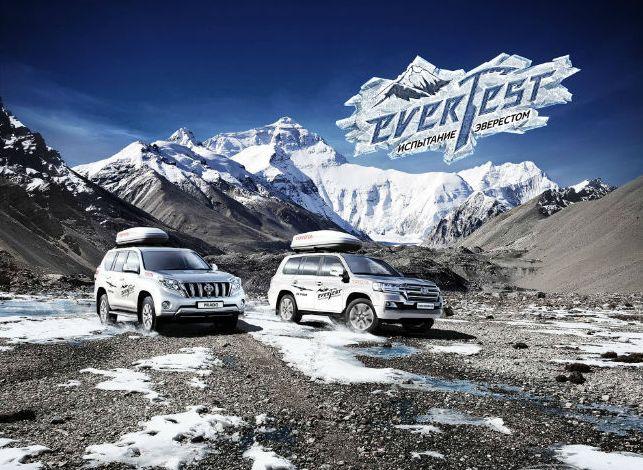 Стоковые внедорожники Land Cruiser доставят альпинистов до северного базового лагеря Эвереста, в общей сложности преодолев путь длиной более чем 12000 километров в сложнейших дорожных, климатических и высотных условиях по территории России, Монголии и Китая, и поддержат их во время восхождения.