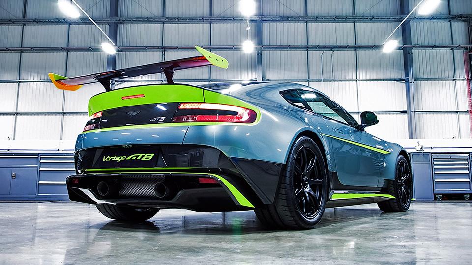 Кроме того, Aston Martin Vantage GT8 получил перенастроенную подвеску с другими амортизаторами, пружинами и иной геометрией, 19-дюймовые колесные диски с покрышками Michelin Pilot Sport Cup 2 (в качестве опции доступны диски из магниевого сплава с одним центральным креплением), карбоновые дверные панели с петлей вместо обычной дверной ручки, кресла со спинками из углепластика. При этом в оснащении модели оставили кондиционер и аудиосистему.