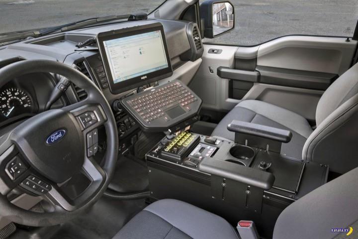 Корпорация Ford постаралась от души, напичкав машину по максимуму. Есть даже специальный отсек для перевозки полицейских собак! Ну и легко моющаяся скамейка для перевозки задержанных.
