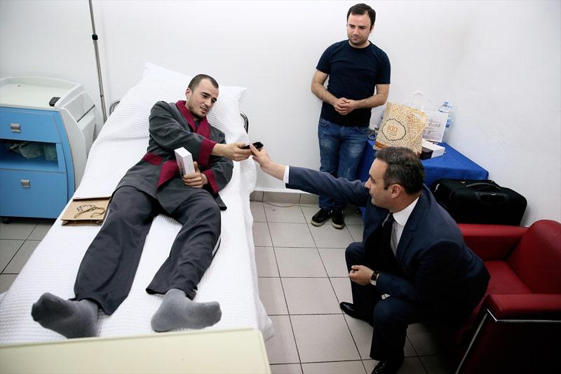 Президент Турции Реджеп Тайип Эрдоган, узнав о происшествии, решил не оставаться в стороне и отправил в адрес военного новый смартфон. За храбрость в бою Мустафа получил iPhone 6s в золотом исполнении. Подарок герою вручил губернатор провинции Мардин, посетивший солдата в палате.