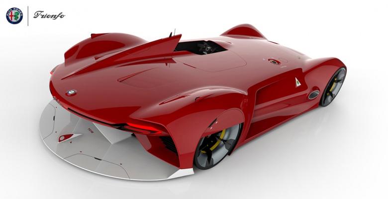 Несмотря на столь впечатляющий вояж в славную историю «Альфы», включая участие болидов марки в таких состязаниях, как Targa Florio, или же в традиционных смотринах классиков на лужайках Пеббл-бич, технически Alfa Romeo Trionfo представляет собой вполне продвинутый и скоростной гоночный болид, с четырьмя электродвигателями в каждой колесной ступице и вспомогательной газовой турбиной, выхлопные патрубки которой можно наблюдать в боковинах передних крыльев.