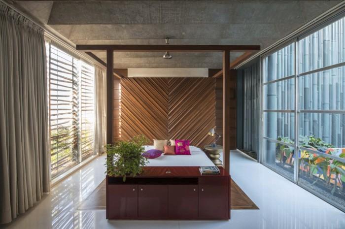 Индийская архитектурная фирма S + PS Architects спроектировала необычный частный дом, основанный на идее контрастов. Жилище будто заключено в бетонную коробку, частично скрывающую хозяев от назойливых взглядов прохожих. Фасад дома выполнен из множества старых, но отреставрированных оконных рам и дверей.