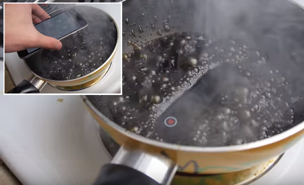 Закипятив газированный напиток в сковороде, мужчина положил туда несчастный гаджет.