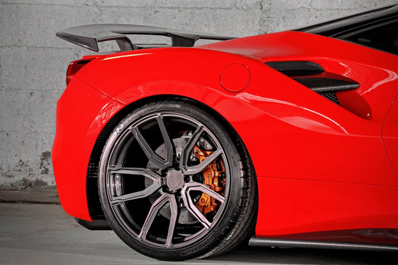Мастерам удалось достичь таких результатов за счёт оптимизации управления движком вкупе с установкой новой системы всасывания воздуха. Отдельного упоминания стоит новая кастомная выхлопная система со спортивными катализаторами. Система создана мастерами своего дела – компанией AKRAPOVIČ. Хотя немецкие мастера вложили все свои силы в двигатель Ferrari, они не забыли и о дизайне итальянского авто. Все новые детали спорткара выполнены из углеродного волокна. В их число входит новый передний сплиттер, боковые юбки, задний диффузор и кастомное заднее крыло-моноблок. Более мелкие детали типа боковых зеркал и воздухозаборников созданы с применением сверхлёгких материалов. Наконец, завершающим штрихом стали 21-дюймовые литые диски LOMA с гоночными шинами Michelin Pilot Super Sport.