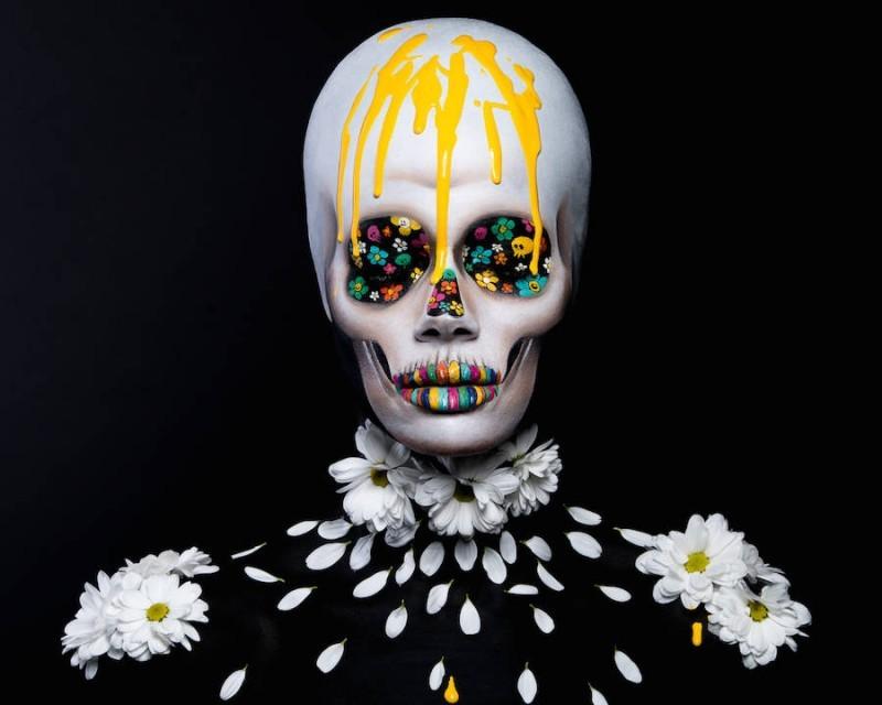 Студенты справились с задачей блестяще – и создали яркие и незабываемые образы, состоящие из цветов, глаз, черепов и Микки-Маусов.