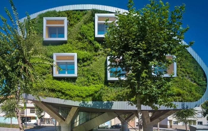 Чтобы соответствовать всем требованиям относительно экологичности здания, в качестве основных строительных элементов были использованы переработанные материалы с минимальным уровнем токсичности. В будущем при необходимости они могут быть снова переработаны. Вертикальные сады по обе стороны способствуют общему впечатления эко-здания.