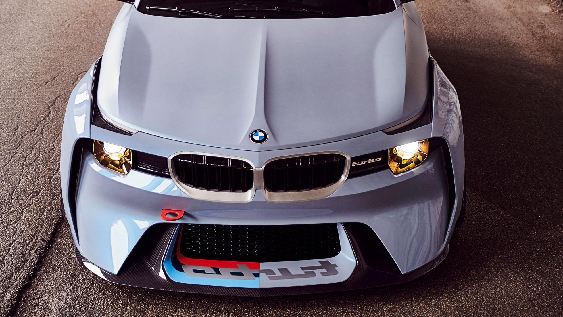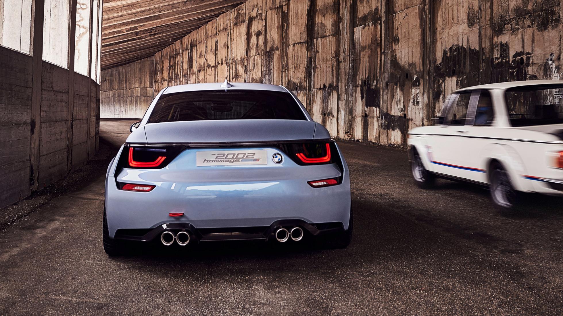 Решётка радиатора тоже является одним из важнейших элементов, связующих автомобили разных эпох: на концепте Hommage она тоже как бы наклонена вперёд, как и у «юбиляра». Обратите внимание на цвет отражателей в фарах BMW 2002 Hommage, он был выбран не случайно: 50 лет — золотая годовщина. Указатели поворота на концепте не были интегрированы в головную оптику, так как и у оригинального 2002 Turbo поворотники были установлены отдельно. Задняя часть BMW 2002 Hommage тоже интересна в плане поиска деталей, характерных для 2002 Turbo. Самое очевидное — почти прямоугольные фонари. Второй момент — логотип баварской компании расположен справа от номерного знака. Какой двигатель установлен под капотом BMW 2002 Hommage, компания не рассказала, но с уверенностью можно говорить о том, что это турбированный мотор.