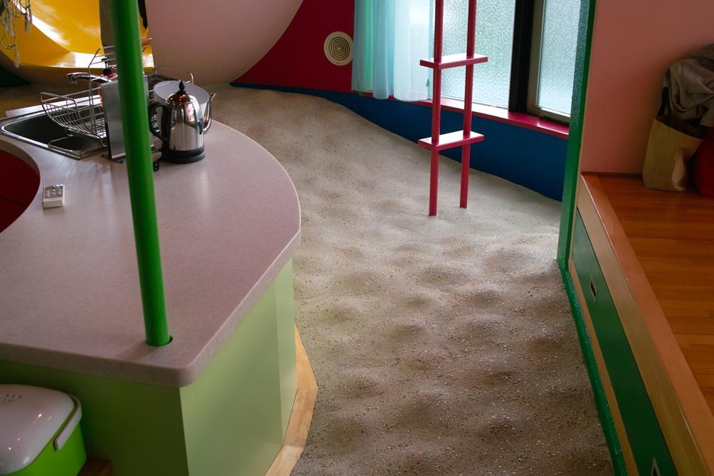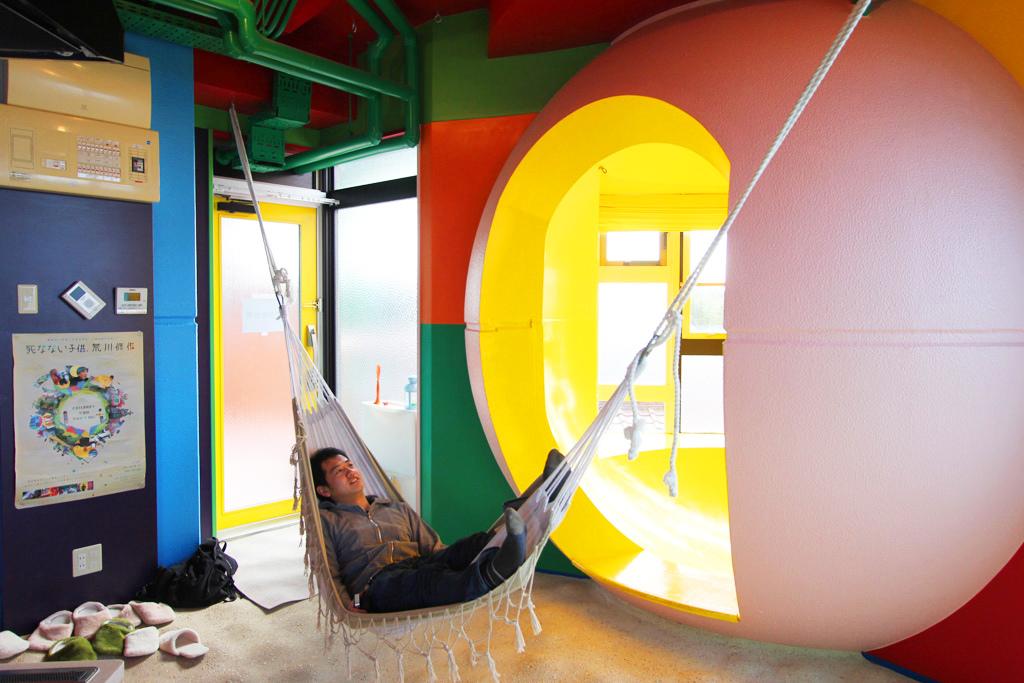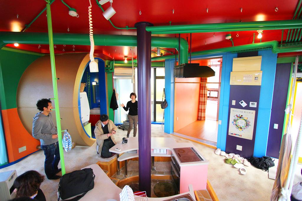 Дом в пригороде Токио (г. Митака) создан по проекту архитектора и художника Сюсаку Аракава (Shusaku Arakawa) и его супруги, поэтессы Маделин Джинс (Madeline Helen Arakawa Gins).